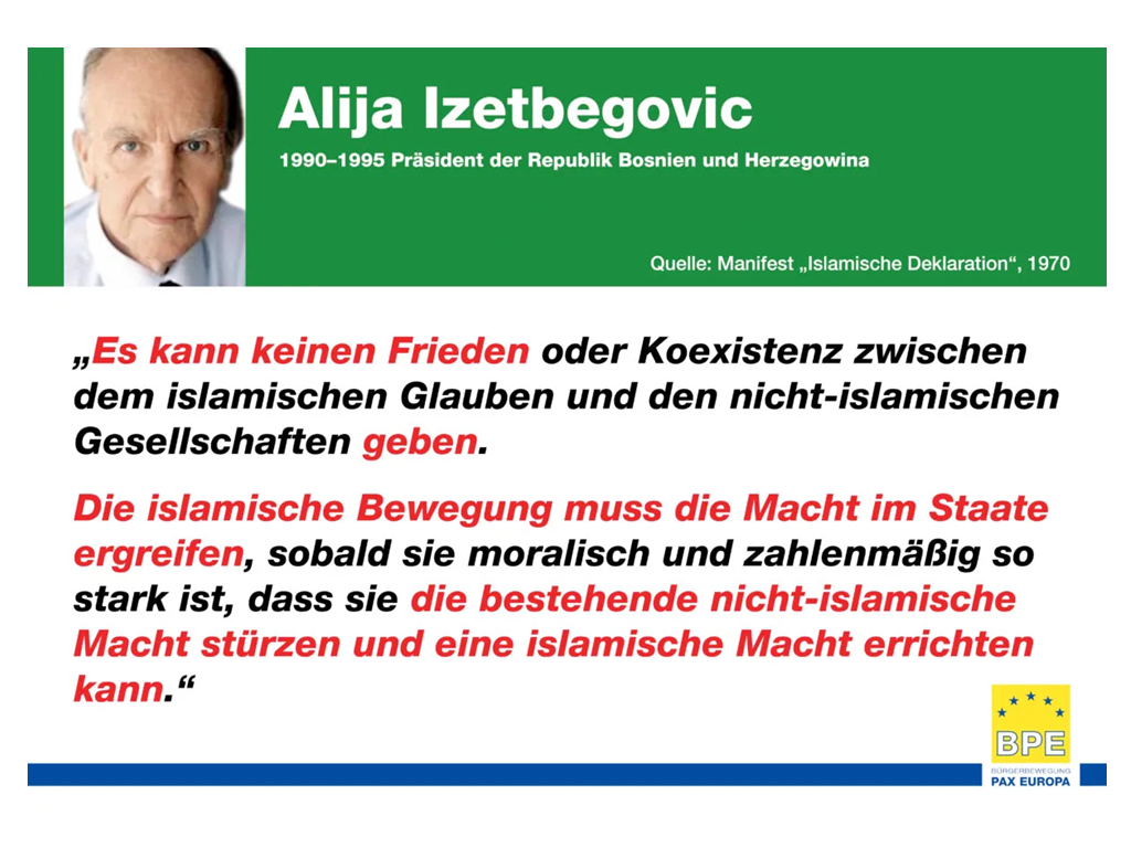 „Der Moslem ist loyal gegenüber Allah, Mohammed und den Muslimen und sagt sich los von allem, was ihnen gegenübersteht. Er soll sich den Leugnern seines Glaubens entgegenstellen und sie zutiefst hassen“: