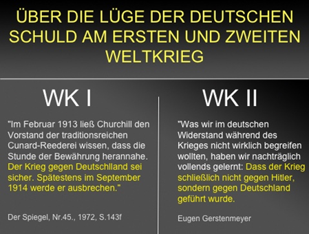 - “Ich führe keinen Krieg gegen Hitler, sondern ich führe einen Krieg gegen Deutschland.” (Churchill, 1940 als neu ernannter Premier-Minister.)