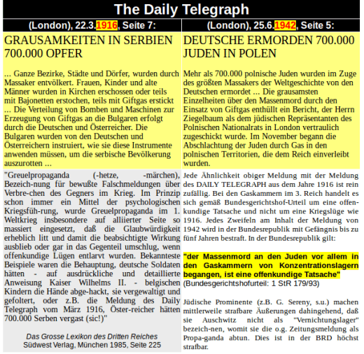 Sie wirkten schwarz auf weiß so fürchterlich und gingen so weit über das hinaus, was später in Wirklichkeit geschah, dass ihre Veröffentlichung den deutschen Kampfwillen nur geschürt hätte.” Winston Churchill, „Der Zweite Weltkrieg”, Band II, Seite 316.