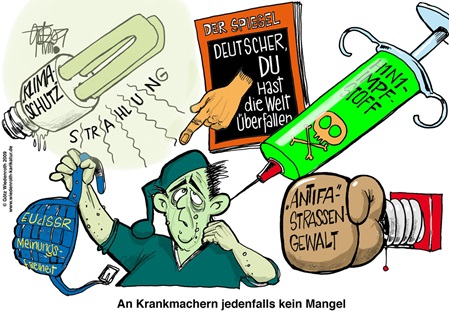 Man könnte, wenn doch ein Vergleich nicht so unglaublich böse und schändlich von mir wäre, das linke Denken mit einer Pest gleichsetzen, die sich in einer Stadt ausbreitet, wenn man die kranken Personen nicht rausschmeißt und alle anderen sich gründlich säubern. Aber wie gesagt, so bösartig will ich mich hier nicht äußern.