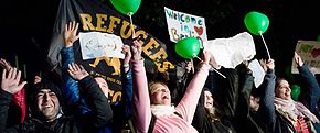 BRD-„Gut“menschen zelebrieren in ersatzreligiöser Verzückung ihre sogenannte „Willkommenskultur“ bei der Ankunft von fremdländischen Zivilokkupanten während der Überfremdungsflut in Europa 2015.