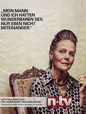 Kulturmarxistische Zersetzung ist seit Jahrzehnten Auftrag und Geschäft der etablierten Medien. Sie gibt sich gern pseudo-witzig. In dieser Werbeanzeige wird als hinterwäldlerisch jede treue Ehefrau hingestellt – man betrügt sich einfach gegenseitig. Herabgesetzt werden das Vertrauen in partnerschaftlichen Beziehungen, die gesunden und spirituell verankerten germanischen Werte der Treue und Ehe, die zugleich Grundlagen für die Familie sind. (Zeitschriftenwerbung des Bertelsmann-Fernsehsenders n-tv vom November 2016)[5]