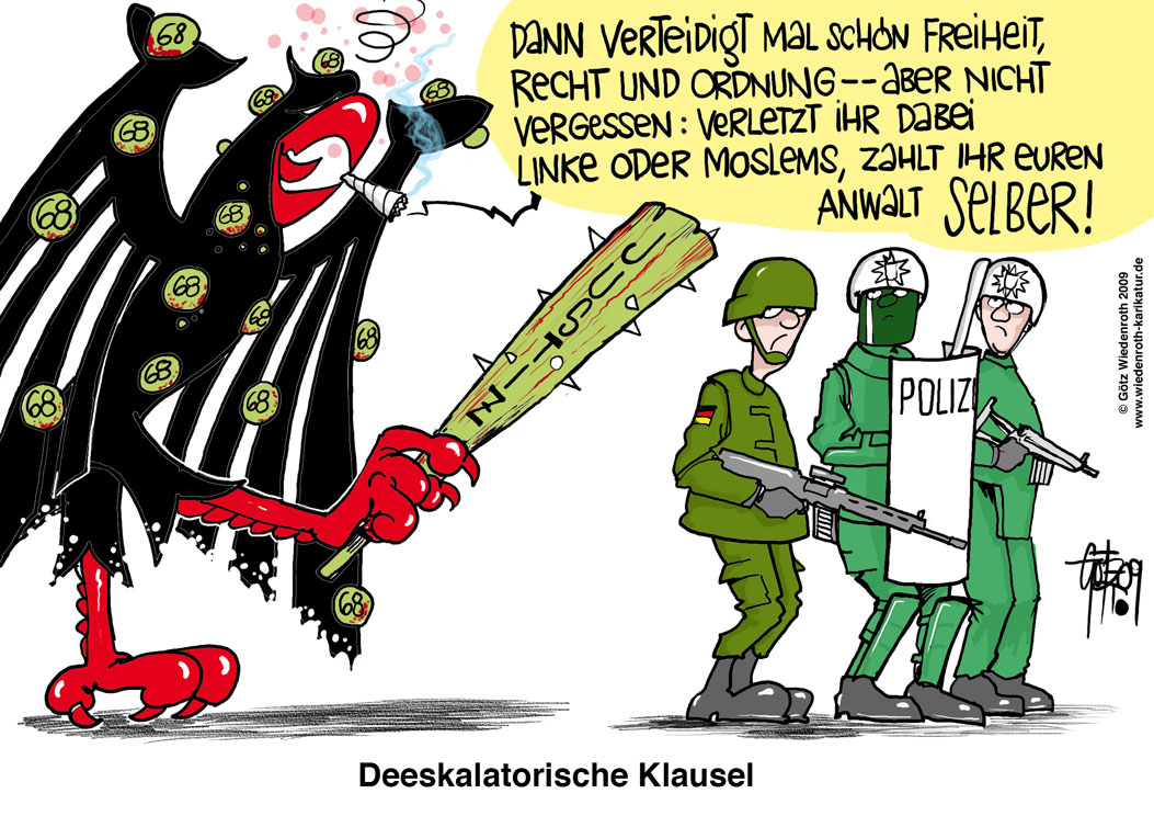 sondern...? Polizei also nur gegen Deutsche? Z.B. die, die sich wehren gegen sexuelles Belästigen, Vergewaltigen, Stehlen, Rauben, Rudelkopftreten, Morden...? Oder nur gegen