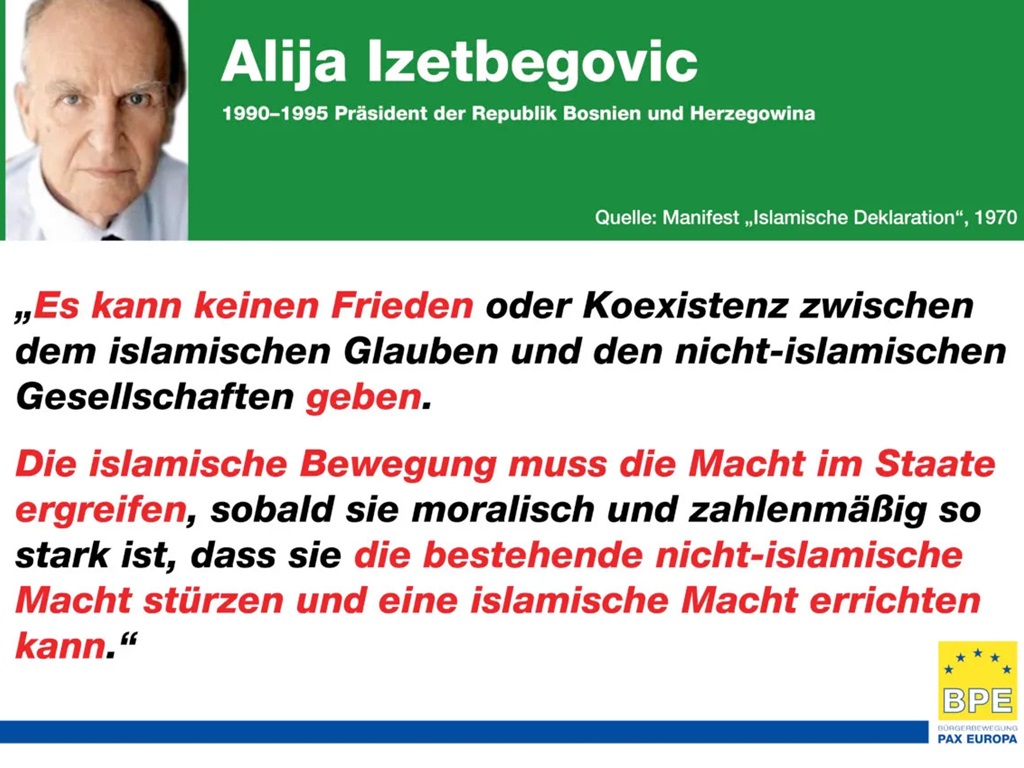 - von der Regierung, allen Fraktionen, deren Parteien, Massenmedien, Justiz, Kirchen, Asylindustrie, Islamverbänden u.v.m.