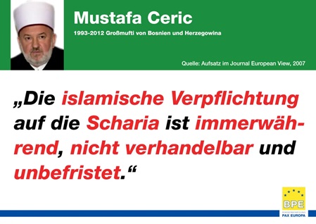 Großmufti von Bosnien und Herzegowina, wichtiger Funktionär des sog. Euro-Islams, Mustafa Ceric: