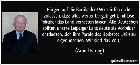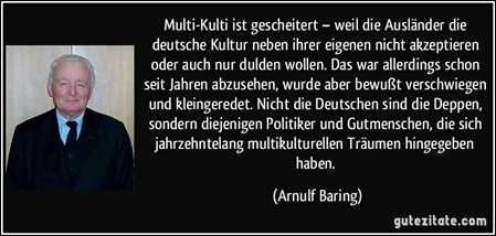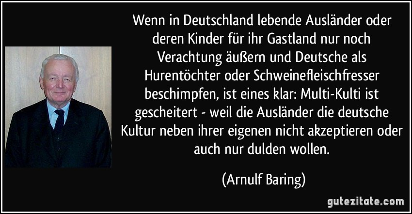 — Prof. Dr. jur. Arnulf Baring, Jurist, Publizist, Politikwissenschaftler, Zeithistoriker und Autor, emeritierter Professor an der Freien Universität Berlin. Im Interview mit Dr. jur. Nicolaus Fest, Kulturchef Bildzeitung, bild.de, 5. April 2006, Wikiquote, Aufrufe 31.03.2023