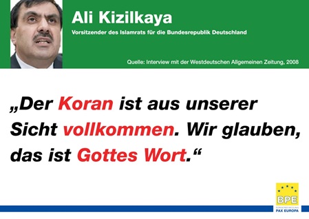 — Ali Kizilkaya, Vorsitzender des Islamrats für die Bundesrepublik Deutschland, Milli Görüs; Interview mit der WAZ, 2008