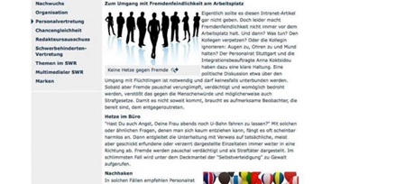 - „Im SWR gibt es seit kurzem eine mehrseitige Anleitung fürs richtige Denunzieren. [...] Wenn jemand z.B. unnötige Witze über die Willkommenskultur macht, [...] wird in dem Papier empfohlen, daß er bei dem jeweiligen Vorgesetzten gemeldet wird. Das Papier ist eine gemeinsame Arbeit des Programmrates und der Integrationsbeauftragten des SWR. Das ist eine absolute Anleitung zur Denunziation. Es ist ein Stasipapier im Westdeutschen Sound.“