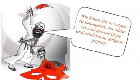 selbst hätten mit den vielen Gewaltangriffen ihrer Gläubigen "gar nichts zu tun" und seien ja "üüberhaupt nicht gewalttätig, sondern "gewaltlos", "zwanglos", "friedlich", und "tolerant", "geduldig" (sanft wie das Leidens-Evangelium der wehrlosen Feindesliebe vom Lamm Jesu).