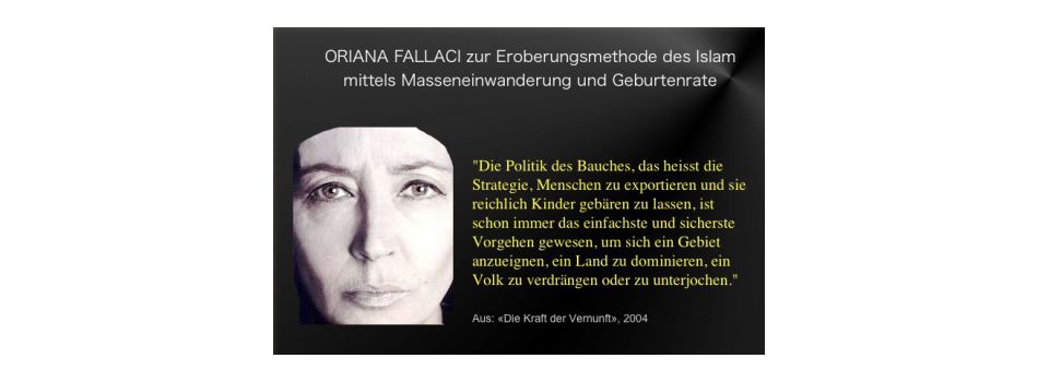 - Angriffskriege zur Ausbreitung des politischen Islam mit dessen Herrschaftsymbolen, z.B. Minarette, Muezzinrufe, verschleierte Frauen, ...